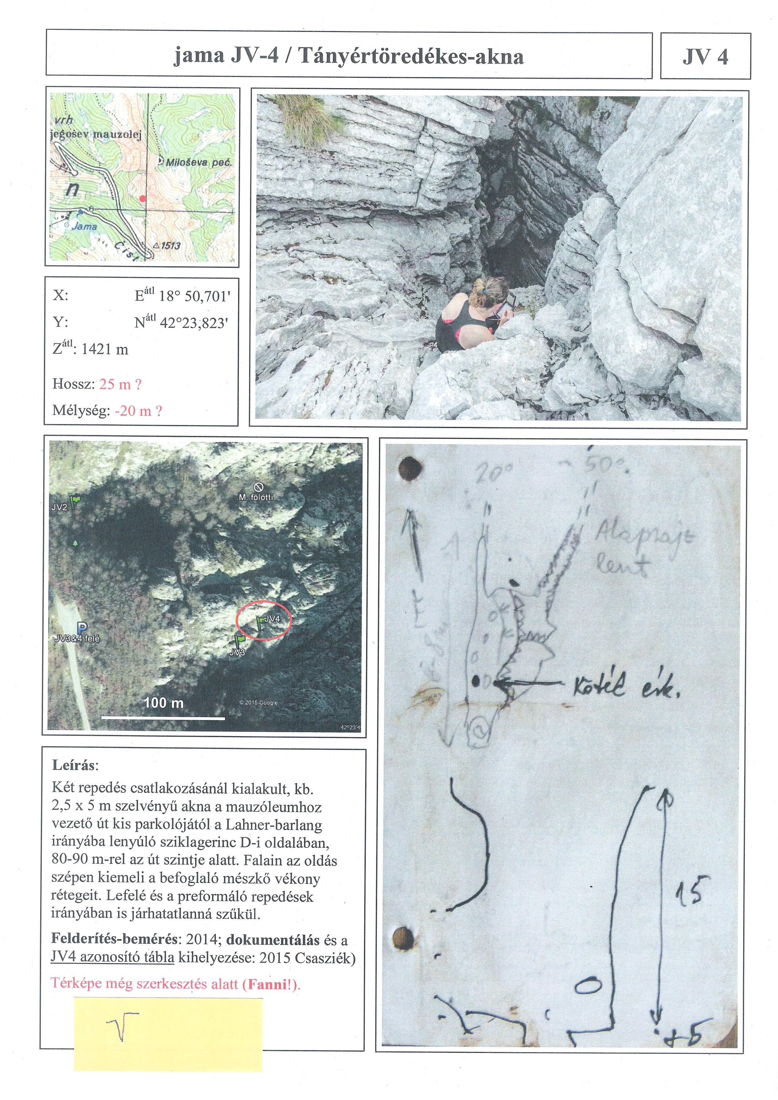 Két repedés csatlakozásánál kialakult, kb. 2,5x5 m szelvényű akna. Mind lefelé, mind a preformáló repedések irányában járhatatlanná szűkül.
