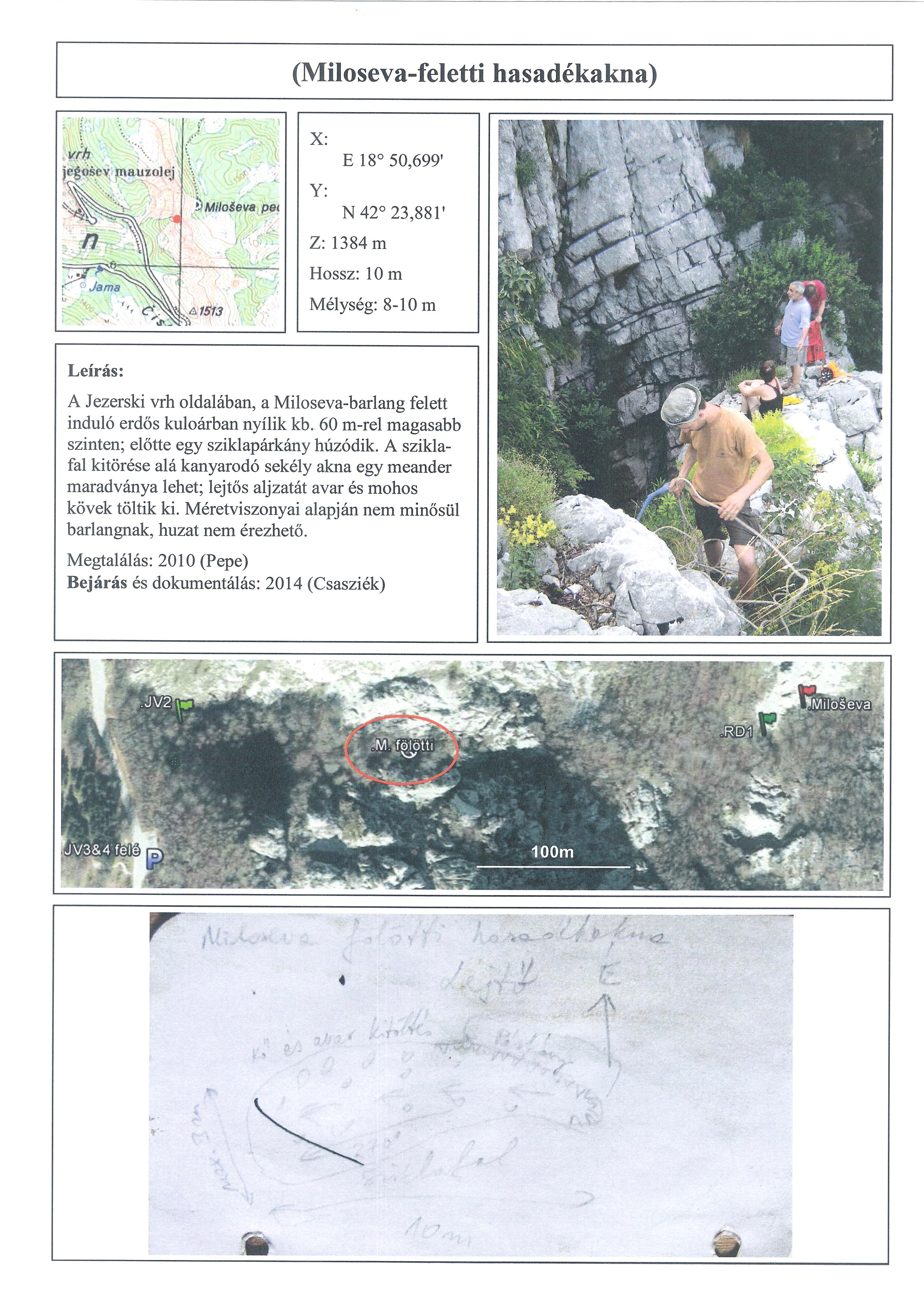 Pepe 2010-ben alulról, a Miloševától fölfelé haladva találta meg. Onnét is hasonló a távolság.