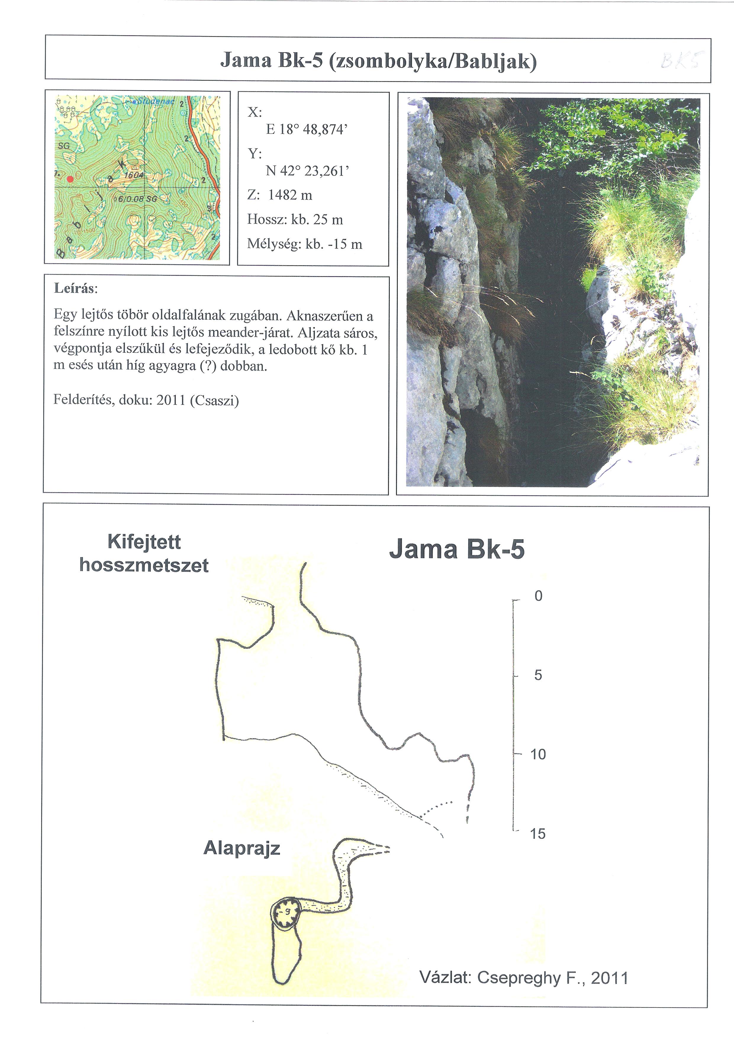 B - (a Kuk nevű polje közepén keresztül): az országúton még tovább kell haladni 1,5 km-t, majd jobbra meredeken le a háztáji földek közé, majd D felé az út végéig és tovább 400-500 m-t, karsztos terepen; ha éppen rátalálunk a szárazvölgy alsó részére, akkor azt követve; mi annak idején a BK2, BK1, BK3, BK4 érintésével kerültünk oda.