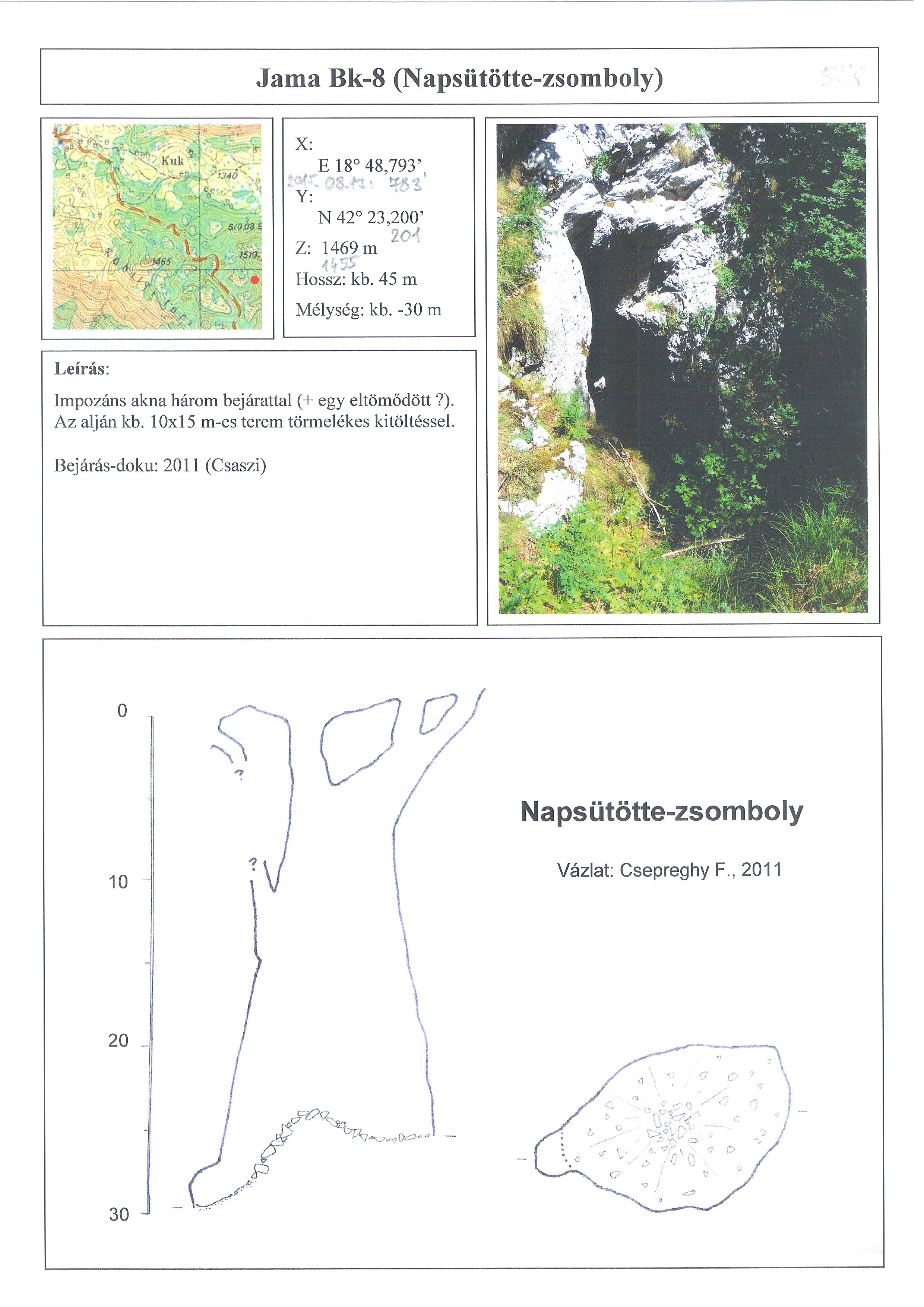 Impozáns akna három bejárattal, amelyeken át szépen besüt a nap (+1 eltömődött?). Az alján teremmé tágul: kb. 10x15 m, törmelékes kitöltéssel. A legmélyebb pontja egy kissé elkülönülő fülke, ahonnét tovább vezető járat nem látszik, huzat nincs.